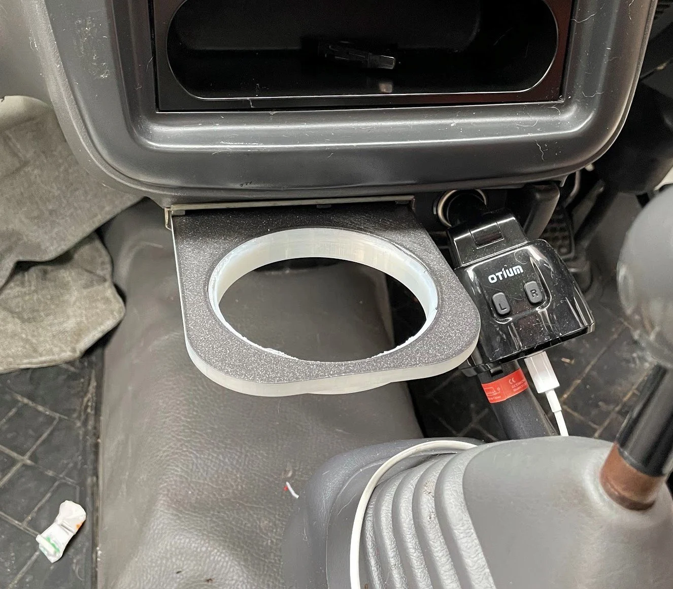I wanted a low profile, stowable cup holder for use in my 94 Hijet. I pulled out the ash tray and utilized the remaining bracket to slide in the cup holder.